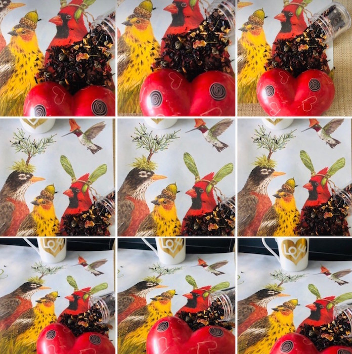 9. The cutest placemats ever. HESTER + COOK “Angie’s Party” with 7 colorful birds, a collab with artist Vicki Sawyer.