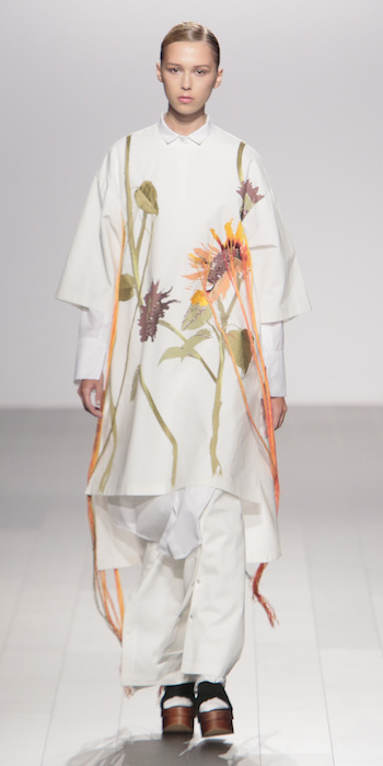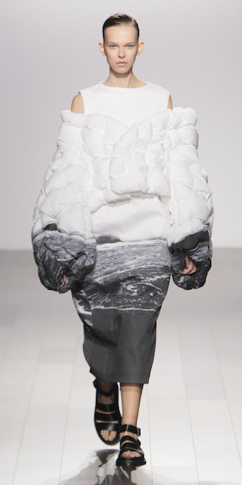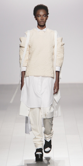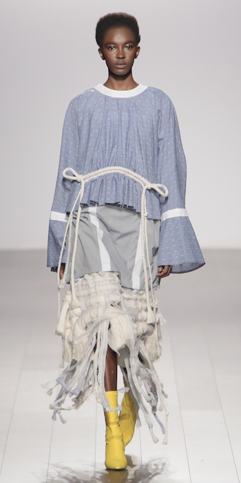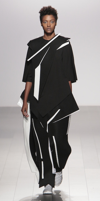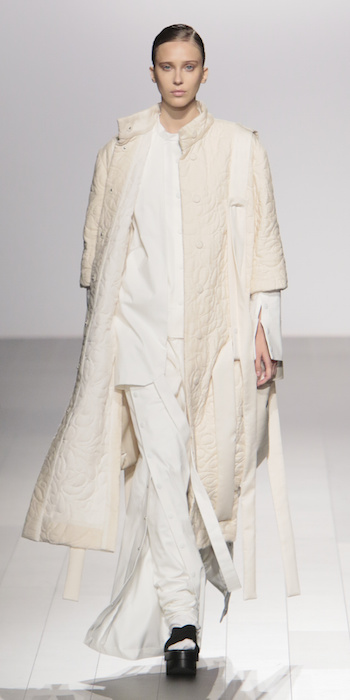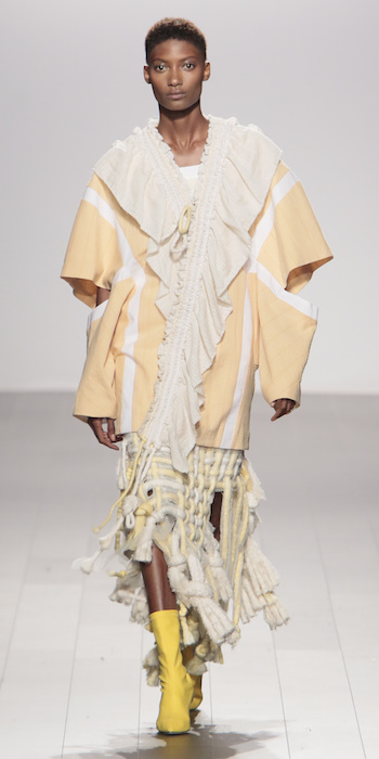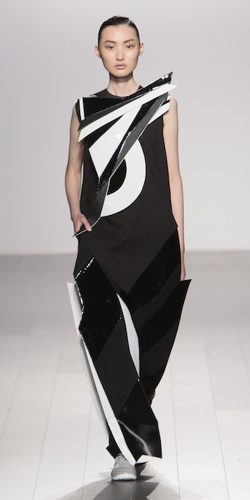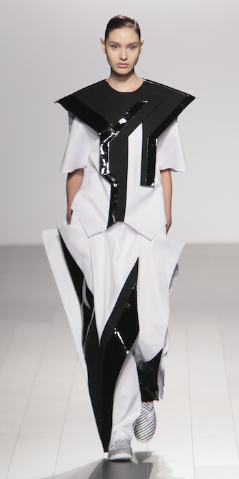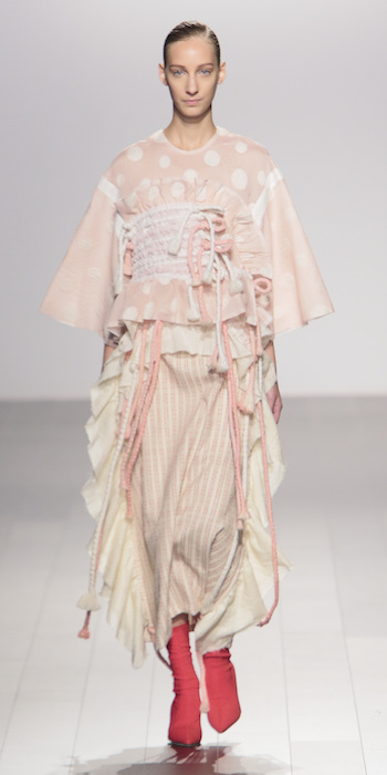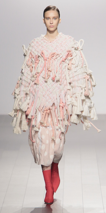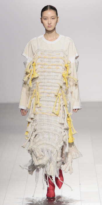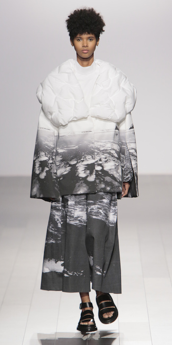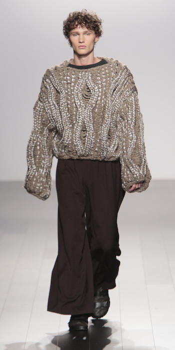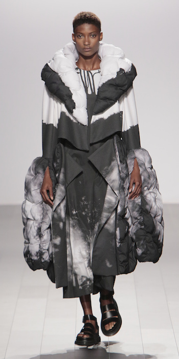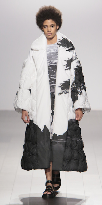 Young is modern and tailored to perfection. The graduating masters program at AAU flaunts fantastic design using multi textured elements. Modern and artsy, metallic was one view I loved, along side the multi textured yarns. The puffy collection looks ready to ship, and what got my attention the most was the knitwear techniques utilized in some of the less dramatic pieces.