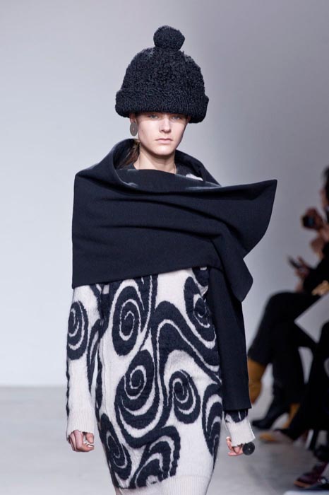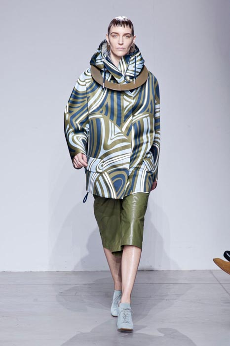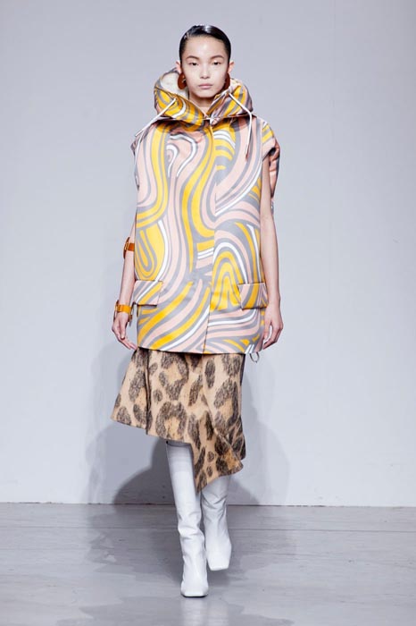 There’s a lot of detail to the neck, with swopping necklines encasing like a fantastic fashionable shell. The color palette is so varied. Bright colors transform in black and white quite nicely. This is a change from what we’ve seen from Acne in the past…and it’s a definite welcoming one.