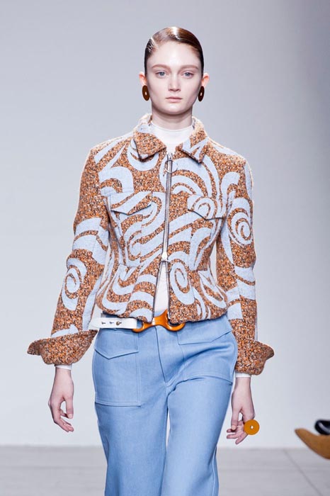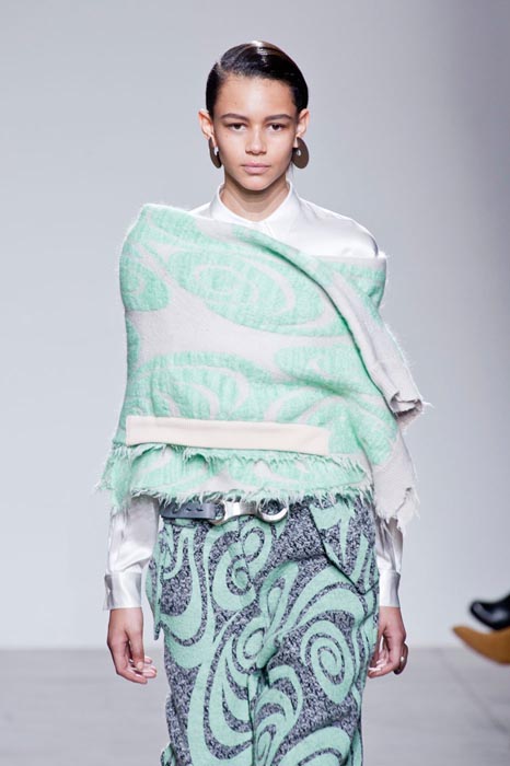 The Acne Studios Fall 2014 PFW collection is surprisingly full of easy-breezy colors and undertones. Designer Jonny Johansson was inspired by the Pacific Ocean and the Cali vibe for this set. With swirly colors and prints looking like ocean waves, these are clothes to wear during a West Coast winter. Of course there’s gorgeous outwear to withstand the elements, but there’s plenty of stunners to leave those freezing temps behind.