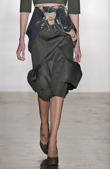 Is this collection blooming or just a dry drought? We’re going with a flourishing WOW. The ALEXANDRE HERCHCOVITCH fall 2013 collection at Milk has been another triumph for the intellectually intriguing Brazilian designer we like to call, Herch. Flowered, draped (softer), corsets with a twist, and a little pattern whimsey all helped create the mood of modern romanticism.