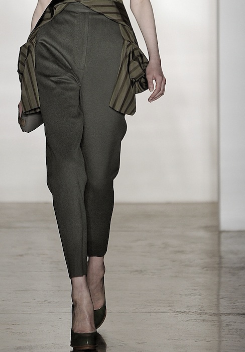 “Flowers, flower petals, and the way flowers slowly die and the petals fall apart,” Herchcovitch named his inspiration for the collection this season. Manifesting flawless original silhouettes that were enticingly fresh and maybe at times not practical but truly appreciated, considering the fall collections this season has had a cast of moody undertones. A set of intricately constructed dresses strutted down the runway with overstated peplums in unexpected places on the female form in poppy reds, ivory, and slate. Structured silk skirts, pants, and tops in solids and artsy patterns in tropicals and florals mixed it up to forward fun.