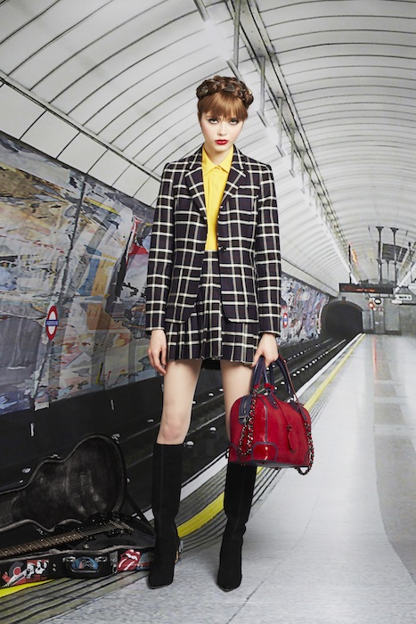 This luxeLondon Underground traveler can’t be subjected to a single style category-as she rocks her leather trousers alongside structured separates. The Alice + Olivia Prefall 2013 woman grabs inspiration wherever she travels, as her bright top is balanced with a plaid skirt- a simple shout out to Anglomania. Although the sharp silhouettes provide strength, a braided up-do and bright lip brings back a hint of sweetness. Uniting the looks with leather boots -her girl is stomping ground… and we’re ready to come along for the ride. Written by Mary Anderson.