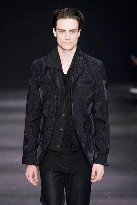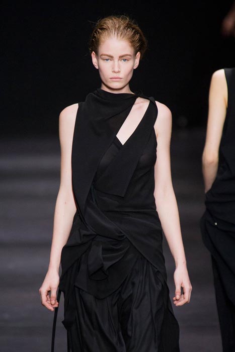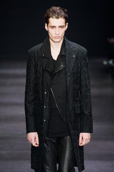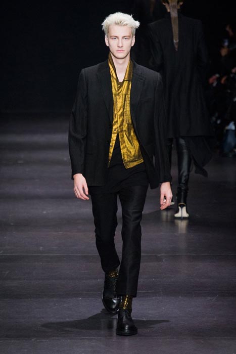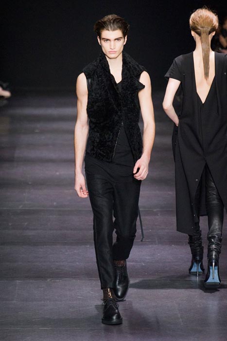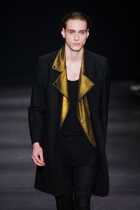 Highlights from the Paris runway: ANN DEMEULEMEESTER fall 2014 selects. A fusion of draped pieces in the Demeulemeester tradition in darks, a few lights and some gold surprises. Notable faces were the guys this time, with NYFW fall 2014 menswear favorite Benjamin Jarvis, alongside Adrien Sahores, and Alexander Ferrario on the Paris Catwalk. Nice.