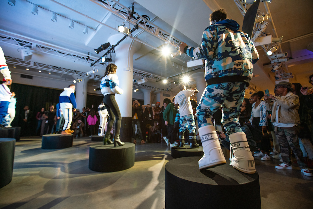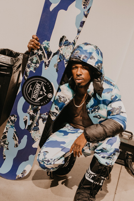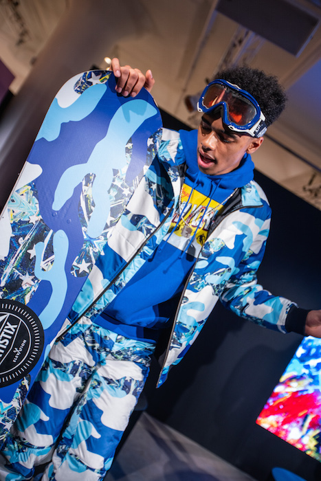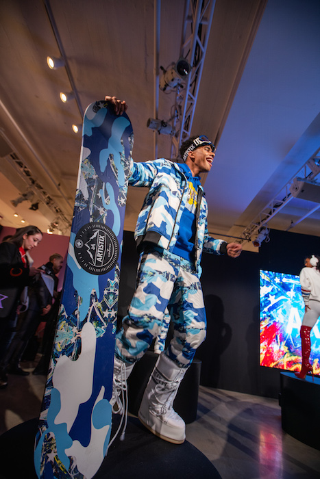 The ski-lodge inspired party rocked on with Andy Hilfiger’s presentation of Artistix fashion for fall 2020. The extreme sport- inspired collection of outerwear + casual wear was given the Artistix by Greg Polisseni touch, introducing the original camo art by Greg.