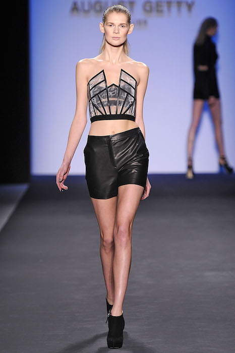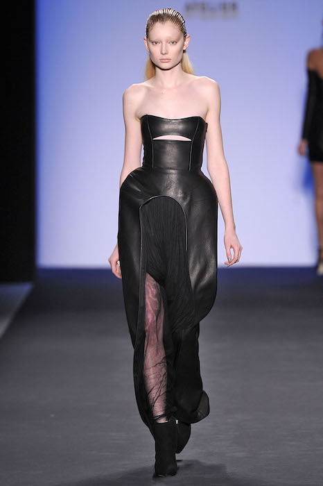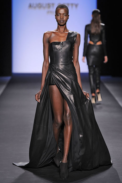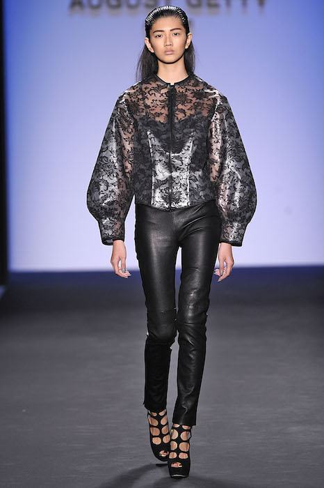 Leathered and dressed for impact! young designer AUGUST GETTY wowed us with his fall 2015 collection shown during NYFW at MBFW. Here are some highlights from our favorite looks, with more to come! AUGUST GETTY fall 2015 NYFW runway selects by Brigitte Segura.