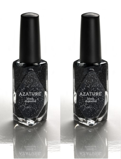 For most of us that want a little bling without that are you kidding me price tag, AZATURE also created a polish that contains a tidbit of that ‘real black diamond’ and retails for $25, packaged in a diamond shaped bottle and is now available at FRED SEGAL.