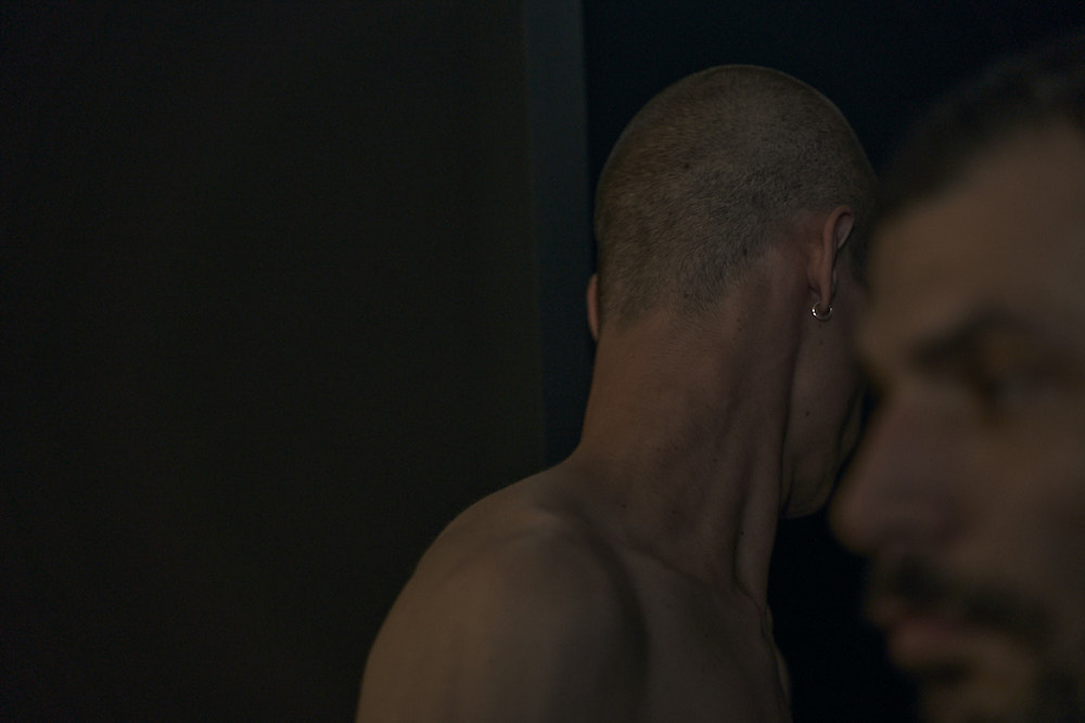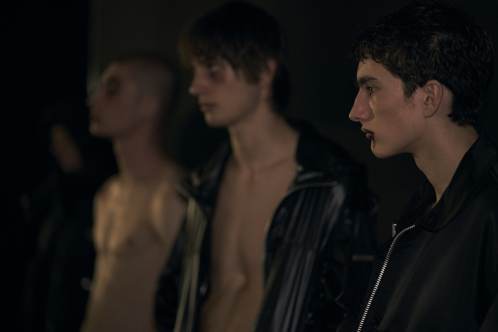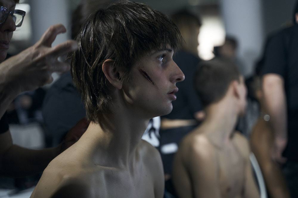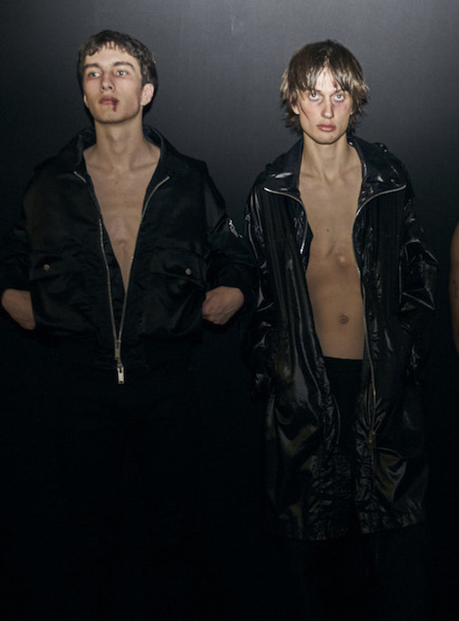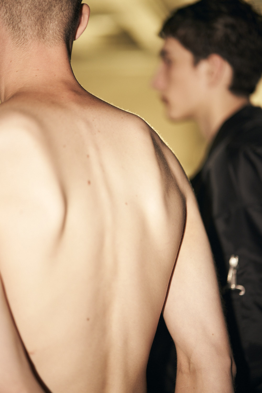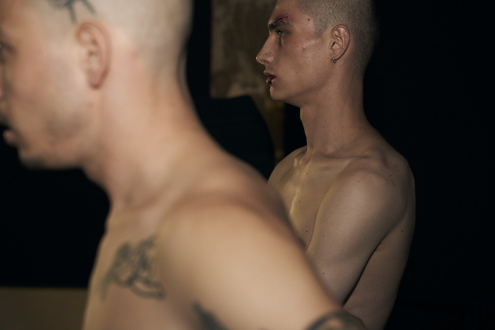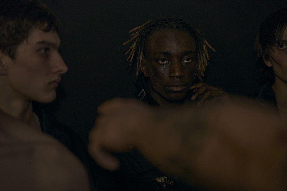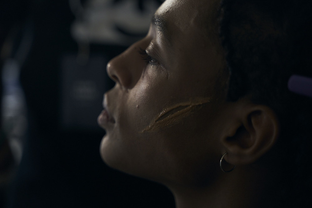 A glimpse of the very few quiet moments behind the scenes in Paris during the Fashion Week mens fall 2020 collections. Capturing the moody moments and expressive eyes, photographer Isabelle Grosse shares a glimpse of the models shot backstage for FashionDailyMag during the grooming + makeup at the Tatras x RiotHill FW 2020 show. Contrasting the rough-around-the-edges and ‘beat up’ tough guy face makeup, the models mood up a pretty sweet face, n’est-ce pas?