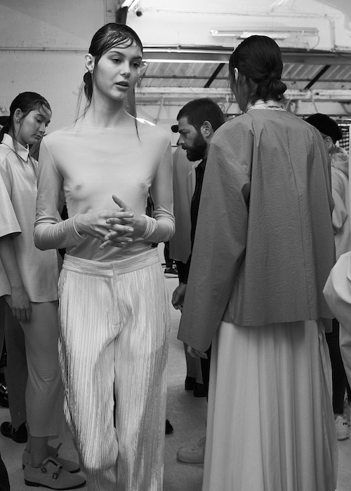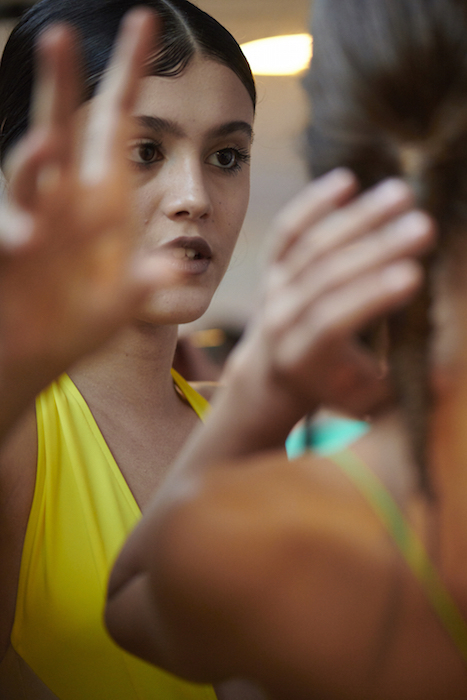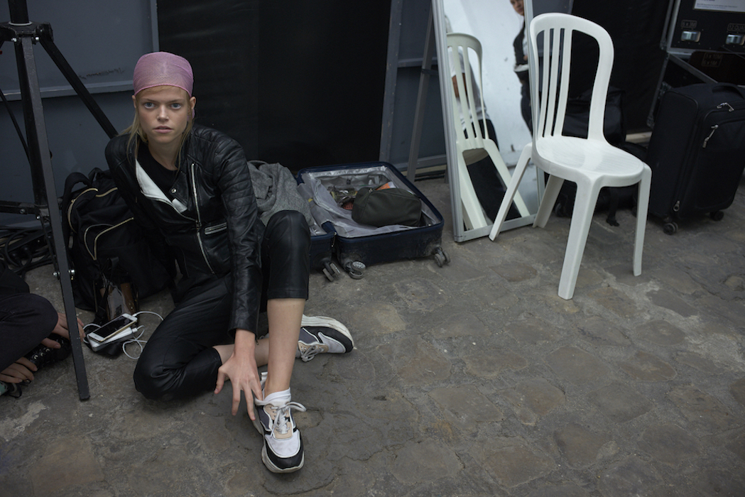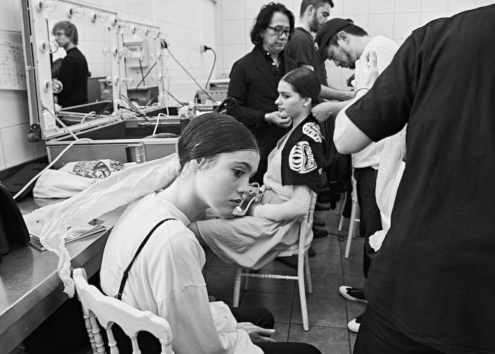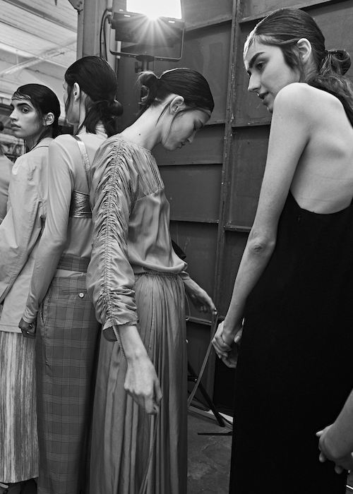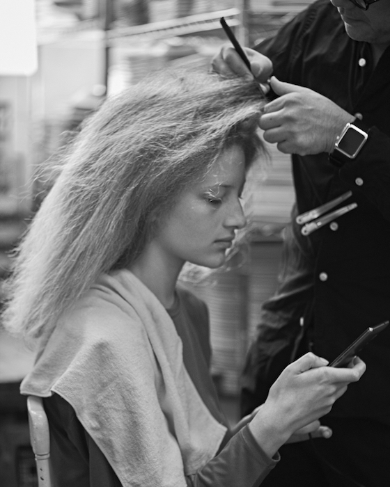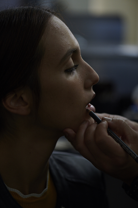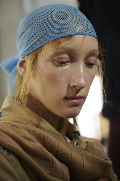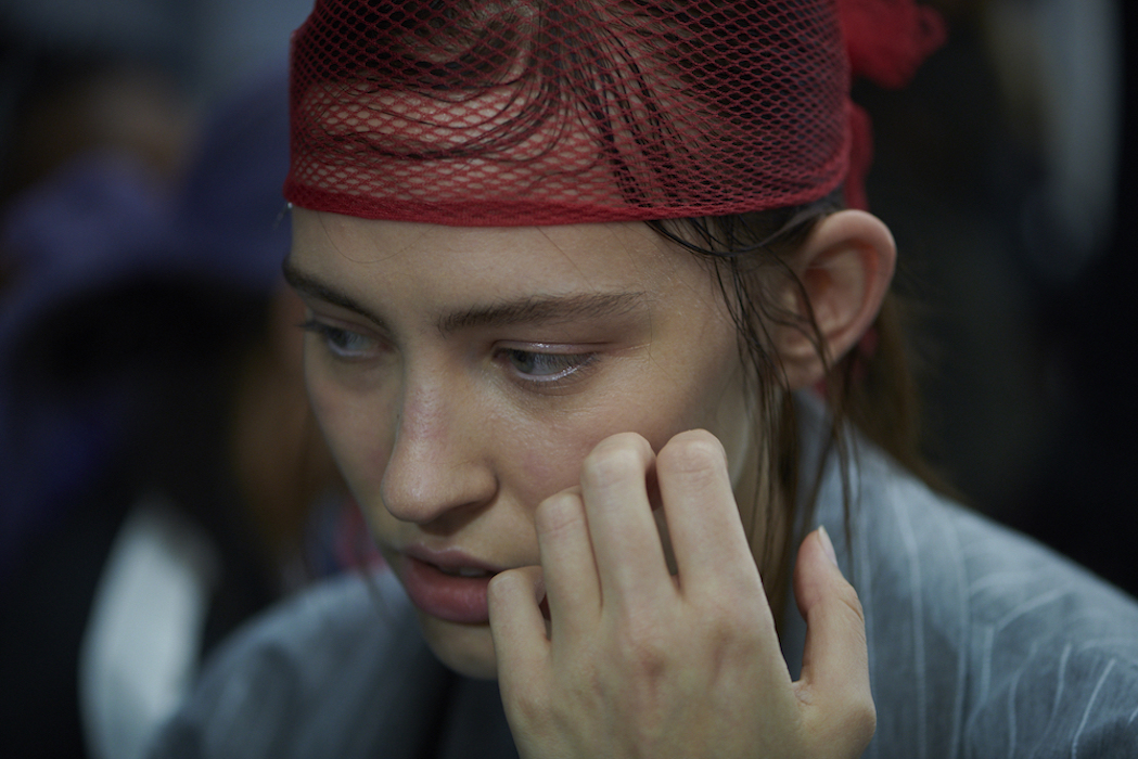 continuing the backstage stories series vol 3, we take another look behind the scenes in Paris, with a look at beauty. A serene mood, modest in look both with hair and makeup. Bold sweeps of eyeshadow accentuated both modern edgy and sparkled silhouettes. Accentuating expressions + individual features of models rather than over the top makeup, with radiant + glowing skin featured.
