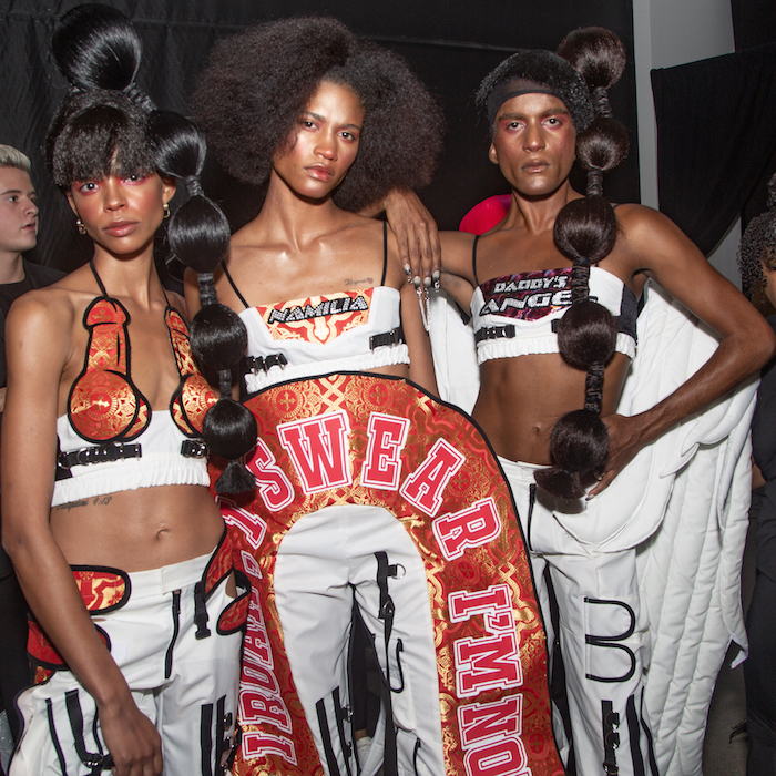 backstage vibes + all the pose(r)s: this time, we’ve captured the creators x stylists x guests x VIPs + creative teams behind the scenes. Smiles for miles mingle with goth, glam… and a lot of Paris Hilton. So much creative sizzle! In Namilia’s name we pray – AWOMEN – and here’s a little look.