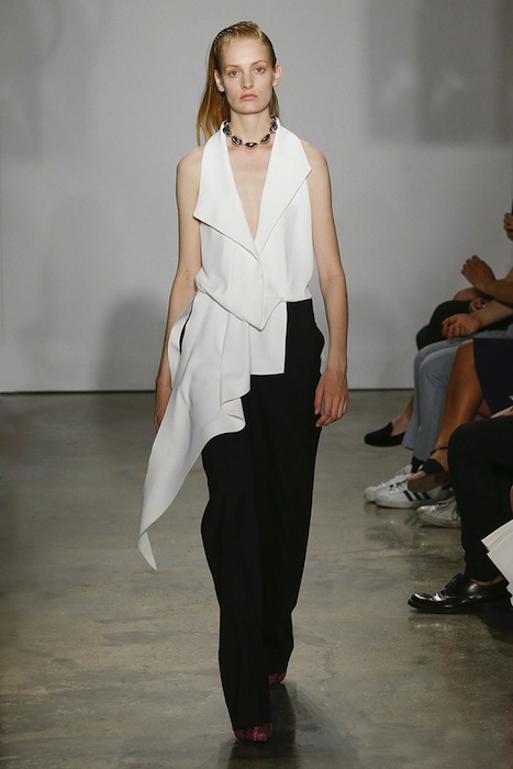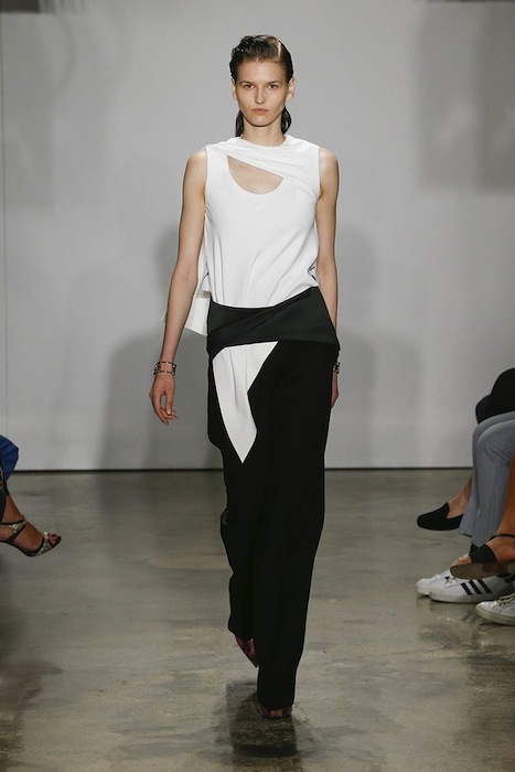 Wearable, draped modern from Balenciaga for Resort 2015. Though the black + white, cut outs, and draped asymmetric details don’t flash a lot of frill, they definitely give a Parisian | NYC flavor of the cools. fdmLOVES selects from BALENCIAGA resort 2015 by Brigitte Segura.