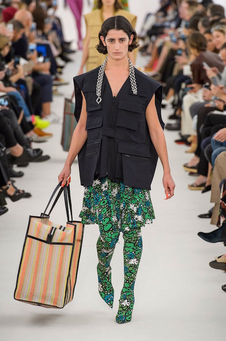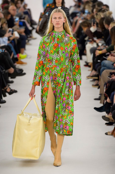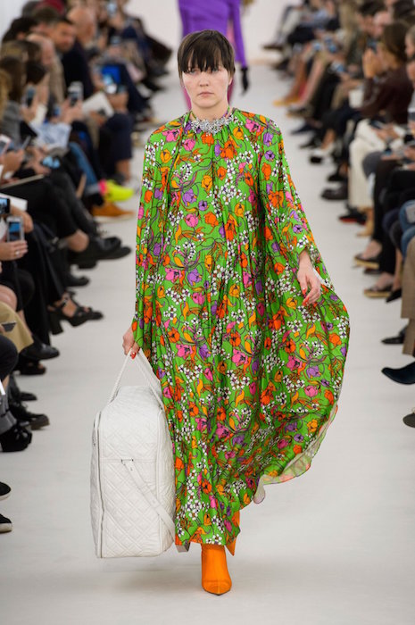 A multi-color edgy vibe at BALENCIAGA. with little burst of flowers. Bubble gum pink mixes with purple, yellow with turq, every color goes with black, even with a fresh happy pattern.