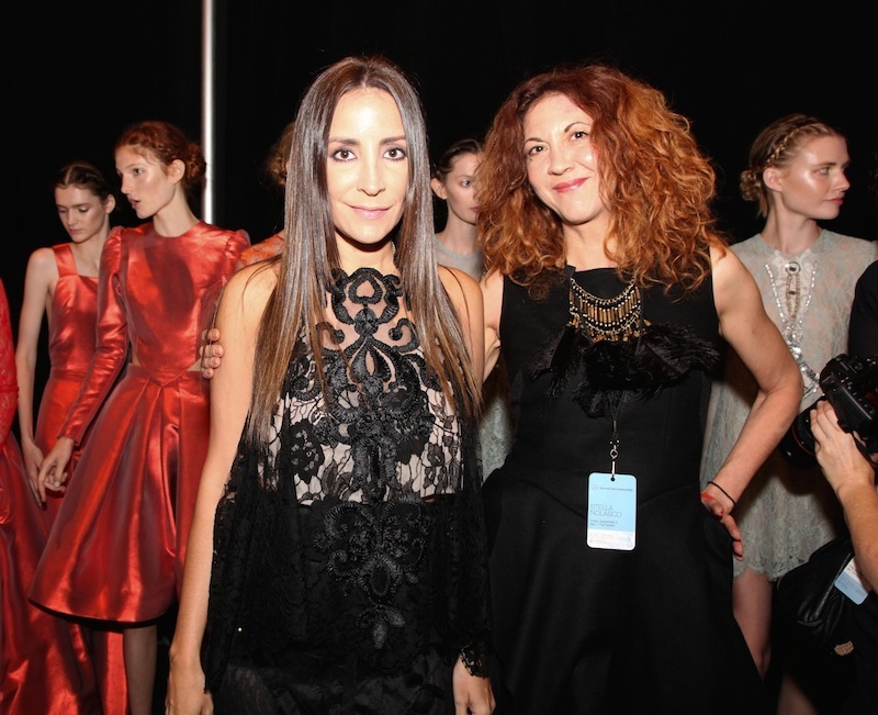 1. Brigitte Segura with Stella Nolasco backstage ss 15 at NYFW | MBFW: hair + MUA Randy at YGallerySalon | dress by KenChen | jewelry by Milanna, photo ALX creatives x FashionDailyMag.