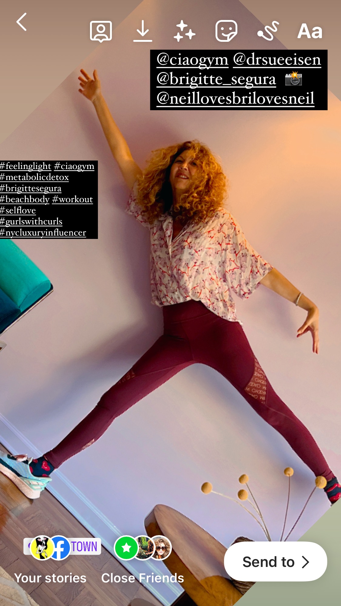 - New Workout Fashion: Get your fashionable workout groove on! There’s nothing more inspiring than a new outfit that fits and looks good. CIAO! Italian styled leggings are getting my fashion x workout leggings look on! The fabric is an upgrade from the usual workout brands – it feels soft, and the stretch holds you in just the right places without bulging out of another. 🙂 The mesh matches in color to the fabric so it looks more designer – and doesn’t look “bare”. Support without feeling squeezed makes me feel bouncy and light. I love that I can add a top or cardi and go walking after, and feel good stretching indoors between working sessions. CIAOGYM ($175).