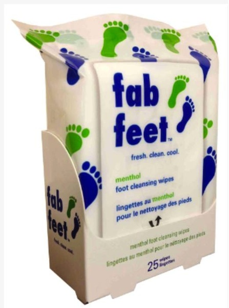 So about those flip flop feet in and out of the city… soothe, clean and treat your feet after a long day with the Fab Feet-Foot Cleansing Wipes. Scented with Menthol, it has a remarkable “cooling sensation” that leaves your feet feeling fresh and rejuvenated.