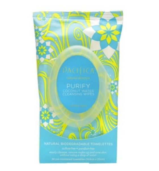 Pacifica purify coconut water cleansing wipes are the perfect cleanser in the form of a towelette when your in a rush. Coconut water infused natural towelettes gently cleanse your face while removing toxins, oil, pollutants and make-up from your skin without water. Papaya, aloe vera, and calendula soothe and calm your skin. These skin-loving wipes are an indispensable part of your daily routine for healthy skin, and so easy to use and go.