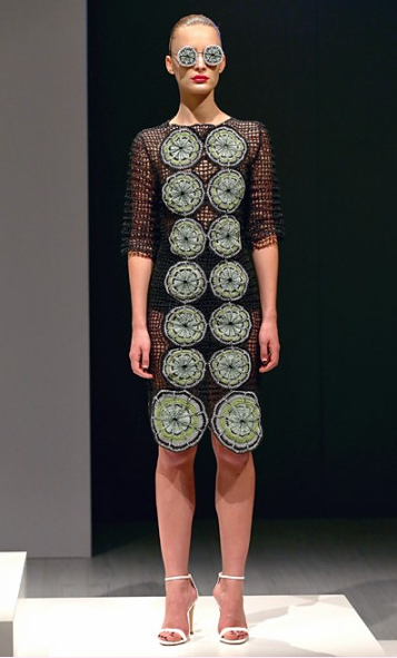 Textured with flair for the season this design duo Derya Issever and Cimen Bachri have a creatively interpreted vision for their label Issever Bahri. It’s an artistic translation of time and space with a bevy of fabrications and finishing touches. The crochet elements added dimension to the clothes and some artful accessories while lacy meshes and metallic created added interest as does the palette in bold shades of red, yellow, and green pop against black or white.