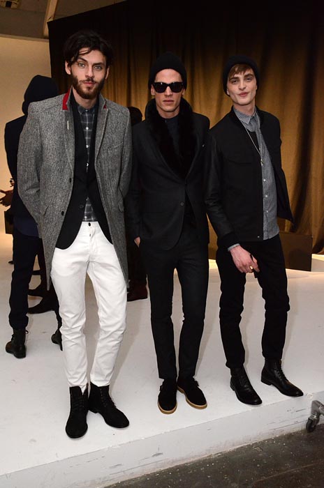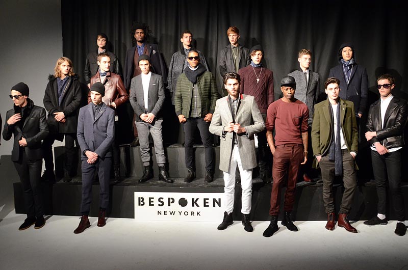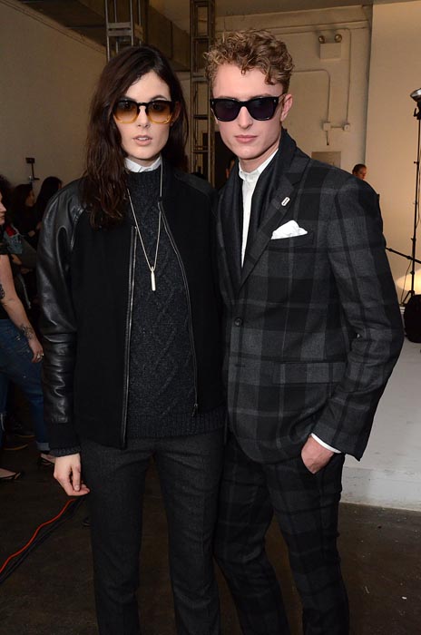 Part of the Pre-NYFW Menswear extravaganza, the Bespoken Fall 2014 collection was the epitome of cool. Designer brothers Liam and Sammy Fayed know what guys want to wear. Taking cues from some rockstar greats, these are duds a guy would want to have some fun in. There’s lots of leather, sweaters and tweed blazers that ooze masculinity. The designers even threw two girls into the mix… [a future foray into womenswear, perhaps?] Our editor [Brigitte] chatted with models Race Imboden and Nicola Wincenc beforehand + snapped a cute pic with the designers themselves. Love it!