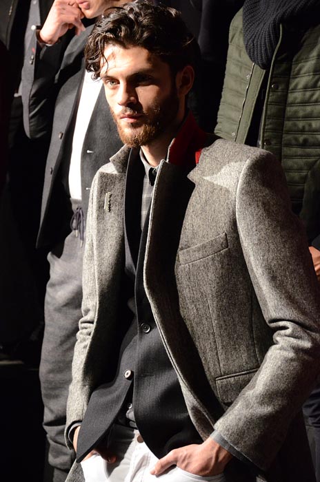 As for the clothes, they speak for themselves. Hooded outerwear is rugged chic and cable-knit sweaters are warm and enticing. We’re obsessing over the quilted suits and brown leather. Seriously, how cool is this muse? We have a feeling he’s well aware of it. This is menswear that exudes confidence. Headgear is on point while the added handgun grip necklaces just add to the delicious bad boy charm. With colors that stay consistently masculine…we’d very much like the Bespoken boy to sit down and stay a while.