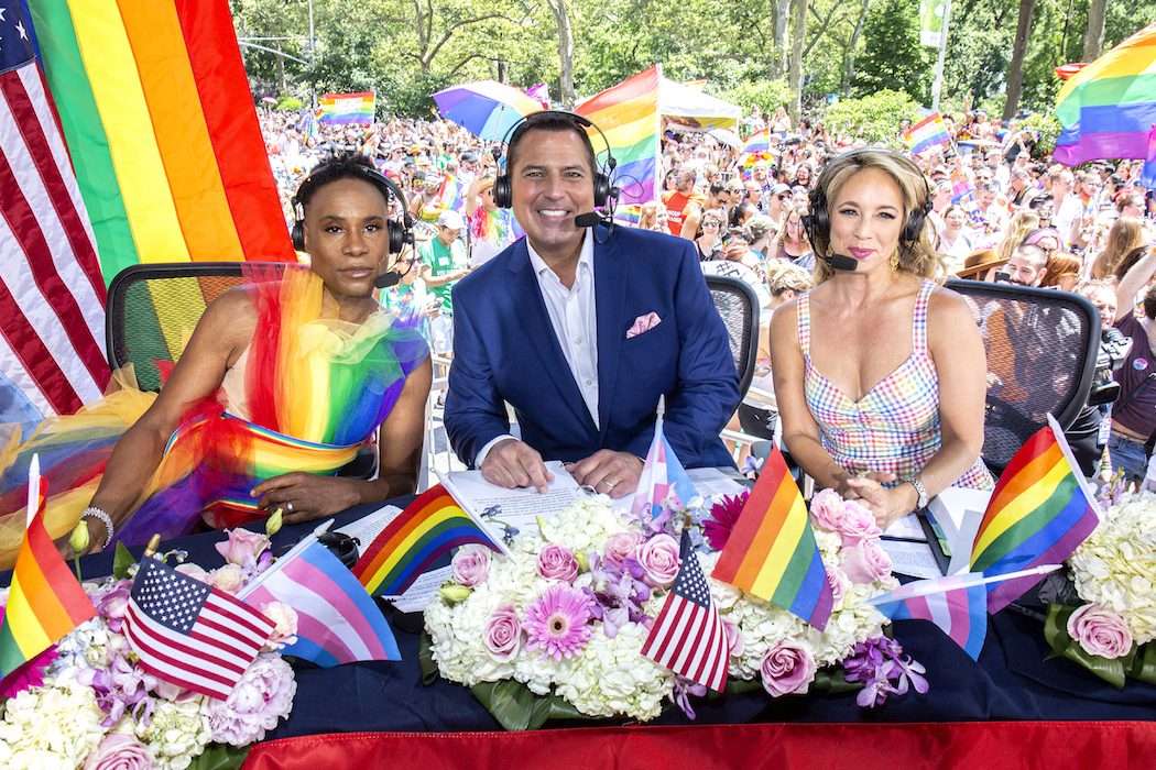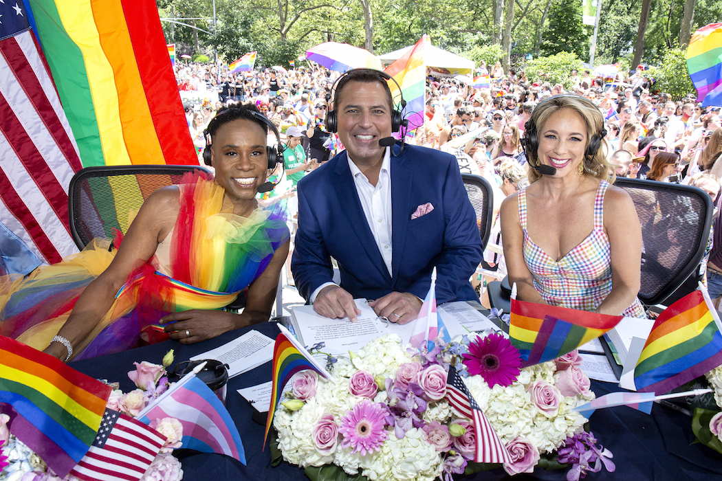 NEW YORK, NEW YORK – JUNE 30: Billy Porter, Ken Rosato and Lauren Glassberg at WorldPride NYC 2019 on June 30, 2019 in New York City. (Photo by Santiago Felipe/Getty Images)