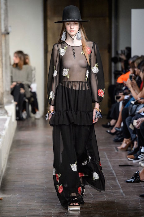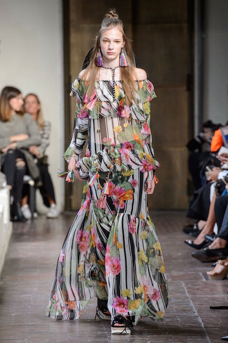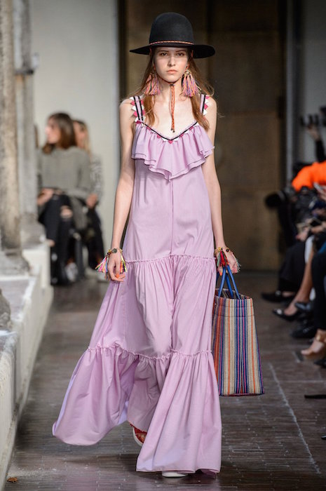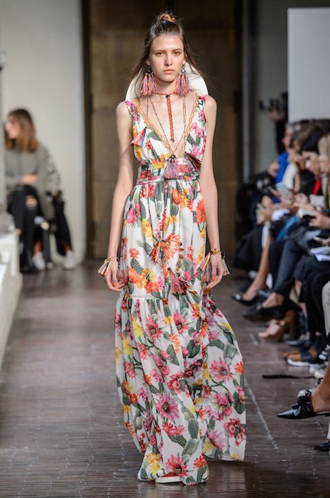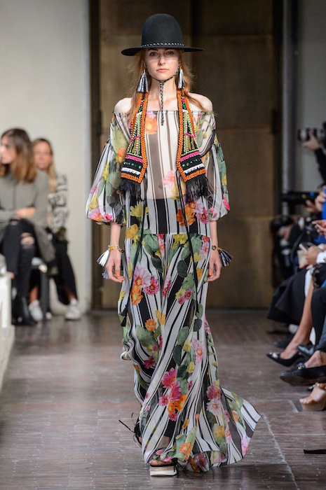 A bit of sweet x flirt at BLUGIRL with maxi dresses and boho flavored pieces on the Milan runway. Beading, patterns, a touch of embroidery keeps the fresh vibe for spring 2017. off the shoulder and ruffles flirt with beaded vests and multicolor florals. Here are highlights from favorite looks… ready to go back to VACA!