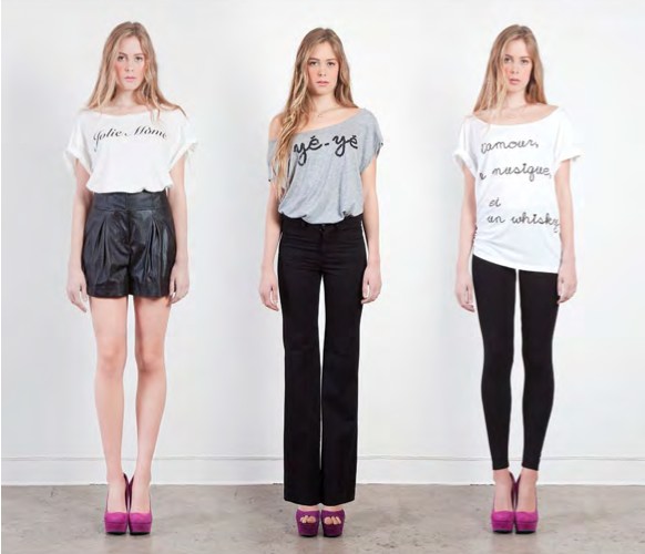 These aren’t your basic [and unflattering] T-shirts… We fell in love with the soft fabrications that come in every day T’s, tops, and tunics with a modest nod to sexiness… and the leather draped vest is the perfect layering piece with enough edge. Wardrobe staples just the way you’d want: Comfy, fashionably understated, and a few wise French words here and there to keep the stylish Bourgeois-Bohème in check. yes, we speak franche. Here are a few of our favorites: Commentary: Brigitte Segura, written by Sarah Freiseis.