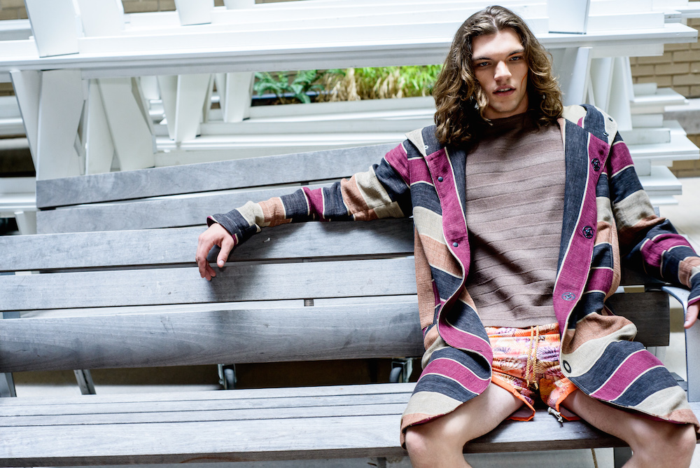 Chic BOHO for the men, yes! Thaddeus O’Neil Casual luxury for the guys is here. A capsule of favorite things to collect in rich fabrications. Don’t be fooled by the chill vibe, the textural play one of a kind jacquards and yarn dyes are exquisitely created by the designer in collaboration with sophisticated French mills.