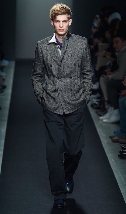 Traditionals taking a twist. With a cast of the young and famous faces sporting the gentleman gone more casual looks, Bottega Veneta aw15 mixed in some fresh to tweeds for men. Layering the looks with olive twists, Benjamin Jarvis, Baptiste Radufe, Ben Allen, and Cole Mohr added the flavor to the loosely styled fluid collection. Fresh faces including Abiah Hostvedt (who we first spotted last NYFW at NYMD shows) added to the younger vibe of the collection. Here’s a few of our favorite looks from the Milan runway.