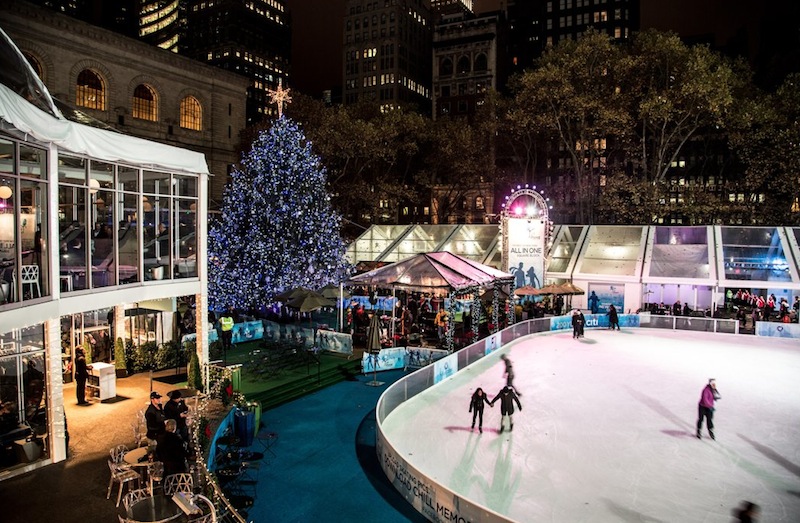 Citi Pond at Bryant Park held its annual Holiday Tree Lighting Ceremony, Tuesday November 27th, kicking off the eighth season of ice skating in mid-town Manhattan. The Norway Spruce tree is 55’ tall outfitted in 3,000 custom fabricated ornaments and 30,000+ LED lights. The rink night was celebrated with seasonal delights through entertainment, shopping, dining, and of course ice skating.