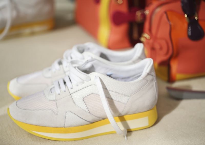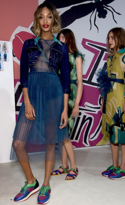This fresh collection takes a rugged + soft feminine approach with see-through sheers layered under stunning trench coats in solids as well as conversational prints. Sporty shoes were on at this show, with brightly colored sneakers and bags accessorizing the looks. Extremely springy with blissful colors, the looks breezed epically by familiar faces sitting front row under the pavilion in beautiful Kensington Park.