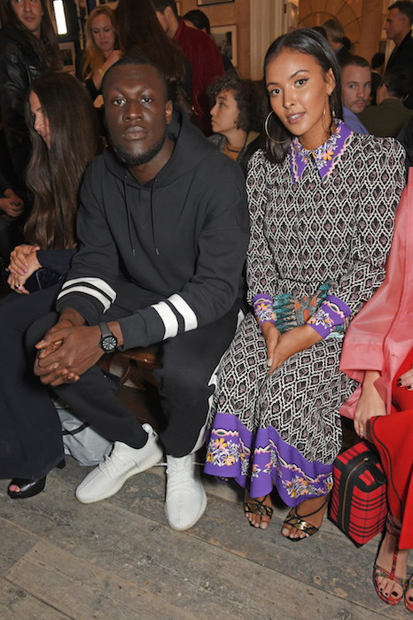 LONDON, ENGLAND – SEPTEMBER 16: Stormzy (L) and Maya Jama wearing Burberry at the Burberry September 2017 at London Fashion Week at The Old Sessions House on September 16, 2017 in London, England. Pic Credit: Dave Benett