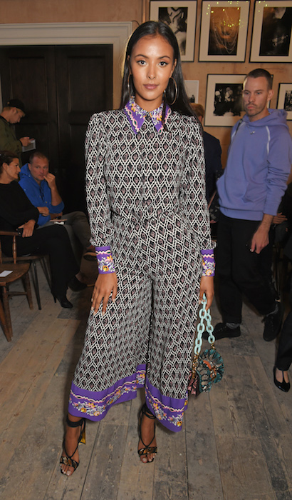 LONDON, ENGLAND – SEPTEMBER 16: Maya Jama wearing Burberry at the Burberry September 2017 at London Fashion Week at The Old Sessions House on September 16, 2017 in London, England. Pic Credit: Dave Benett