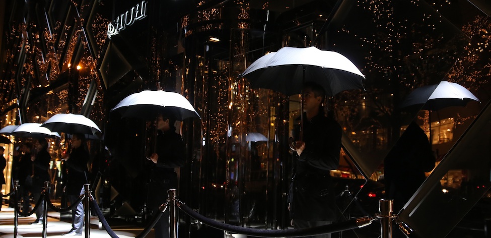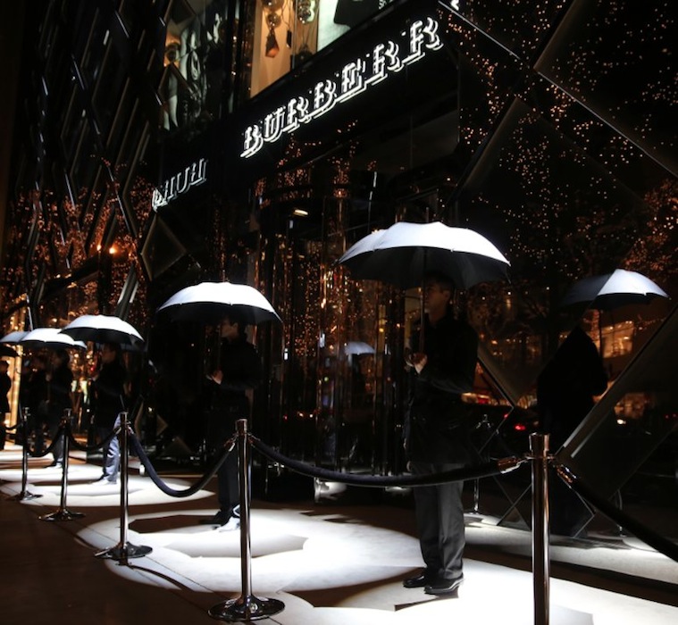 Images of Chicagoans wearing iconic trench coats were displayed throughout the store and the city and globally across Burberry social media. An immersive physical and digital experience in the usual BURBERRY tradition, with performers emulating the sound of rain throughout the space as bespoke Chicago content appeared on the store’s five story interior digital wall. A little view of the scene, including british singer Carl Barat from the Libertines performing… more to come! – brigitte