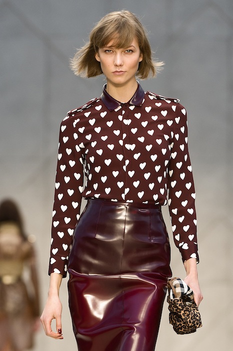 Burberry Autumn Winter 2013 interjected happiness into their haute looks. Creative Director Christopher Bailey, who season after season fearlessly approaches new ways to reinvent the classic trench, this time formed a happy medium between traditional textiles and powerhouse prints in the “Trench Kisses” collection. Simply see the way he took animal prints, sleek cashmere and calfskin, stripes, and also hearts, and made them look like an everyday occurrence (don’t we wish!).