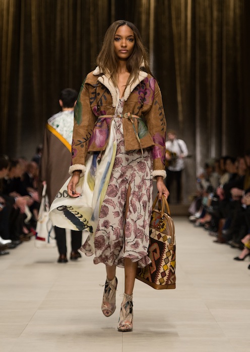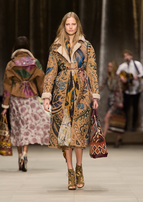 Pattern happy at BURBERRY PRORSUM womenswear collection for fall 2014 during London Fashion Week. Introducting the BLOOMSBURY GIRLS, the collection takes creative inspiration from the British decorative art of the Bloomsbury set and Charleston, the country home and meeting place for the writers, painters and intellectuals who formed the group. Familiar faces on the runway include Cara Delevingne, Edie Campbell, Malaika Firth, Jourdan Dunn and Suki Waterhouse.