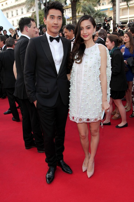 Mark Chao (L) and Angelababy wearing Dior attends the “How To Train Your Dragon 2” premiere during the 67th Annual Cannes Film Festival May 16, 2014.