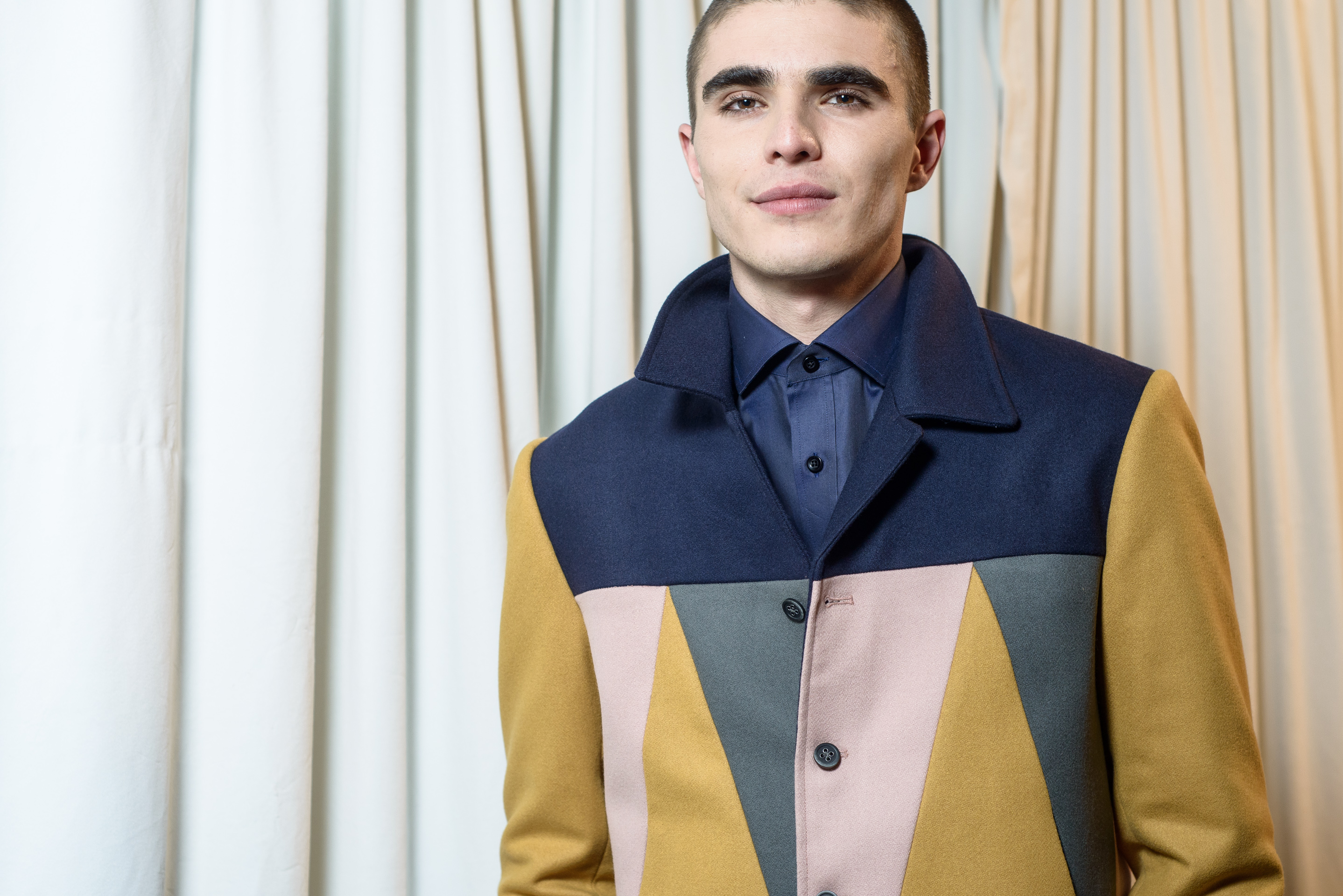 A fresh striped, color blocked and pastelled collection for CARLOS CAMPOS menswear this season. The standard blue is ever so present, with unusual color combos. Mustard mixes with the mossy tones offset by the Campos traditional navy, and then a shot of pale pepto. This season, Carlos injects his artistic flavor in a confident fusion of tailored menswear pieces fused with a play on geometric shapes + colors creating new patterns. A nice edgy evolution.