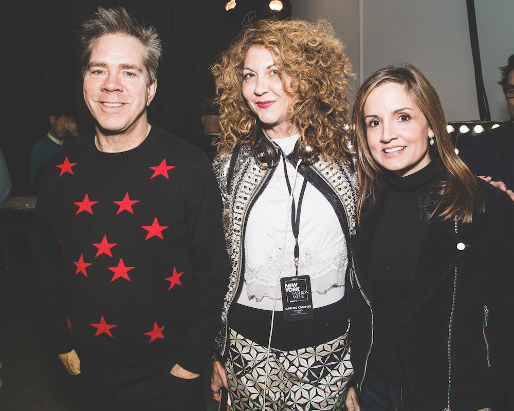 Andrew Hilfiger backstage before walking the CAMPOS show with the fam: Kim and Andy Hilfiger.