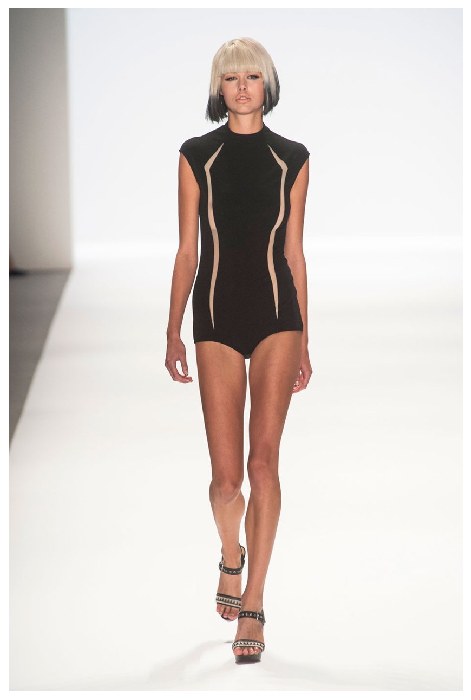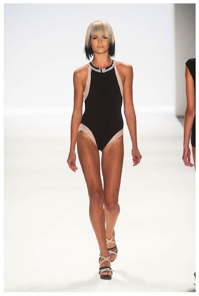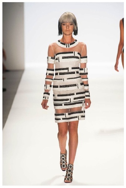 With such an amazing line up including lazer cuts, color blocking, Massai beaded cocktail dresses, leather and Organza ball gowns, it was the good combination of edge and femininity which made us love this collection even more. The “cultural collision of traditional tribal patterns in a monochromatic palette” that we all fell in love with wasn’t quite what we expected. We were happy to see athletic mesh, exposed backs and a series of form flattering, striped cocktail dresses. One of the more interesting aspects of his collection was his use of modern, high-tech material.