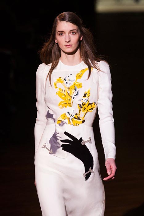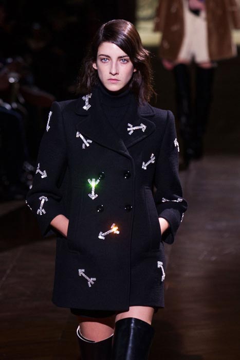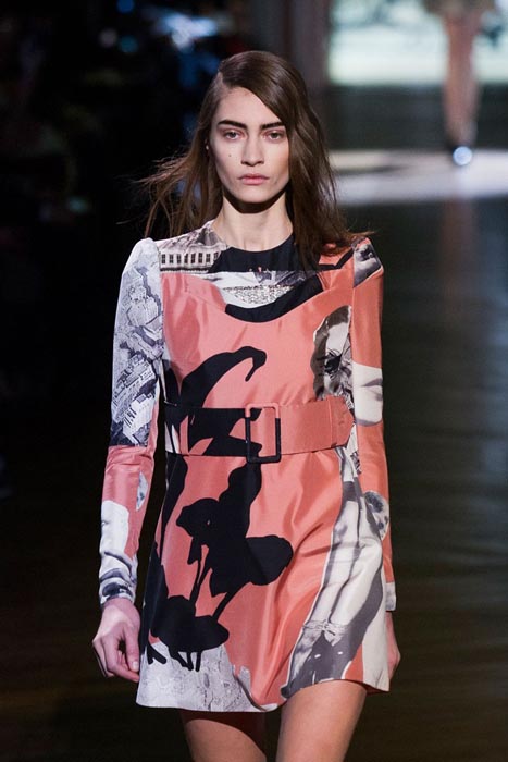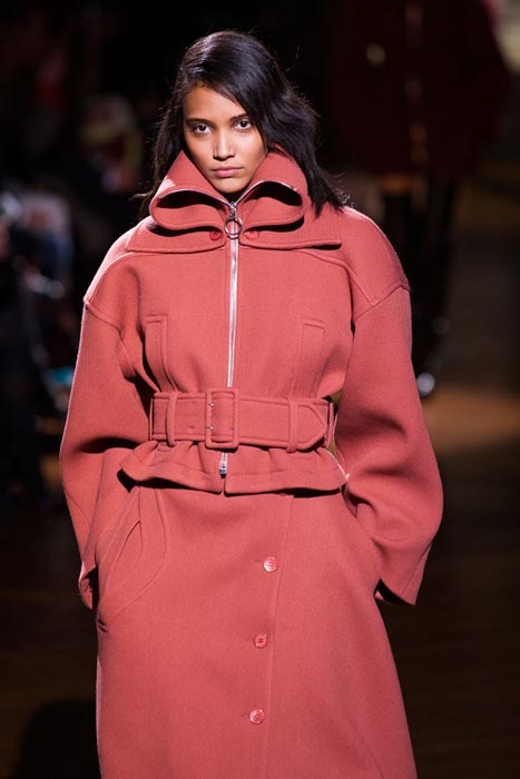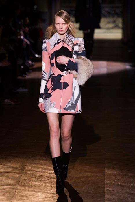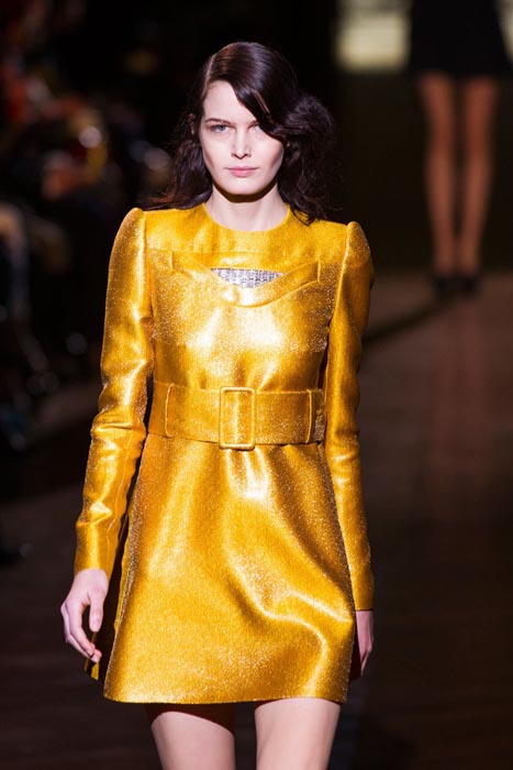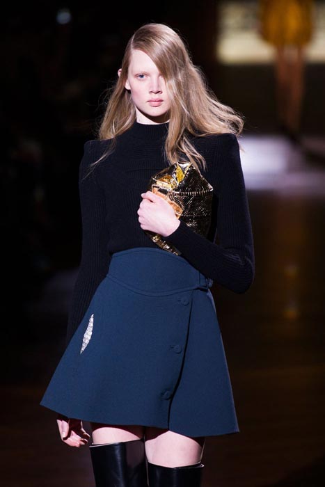 Take a look at the Carven Fall 2014 collection and you’ll be transported to the roaring 1940s. Designer Guillaume Henry presented wide-shouldered coats and animal prints galore— a set that looks and breathes the Big Band era back to life. Rich colors like cranberry and shimmering gold speak loud and true on short dresses while navy numbers continue to trend on the PFW runway. Add some swing to your step and indulge in this fantastic retro flair.