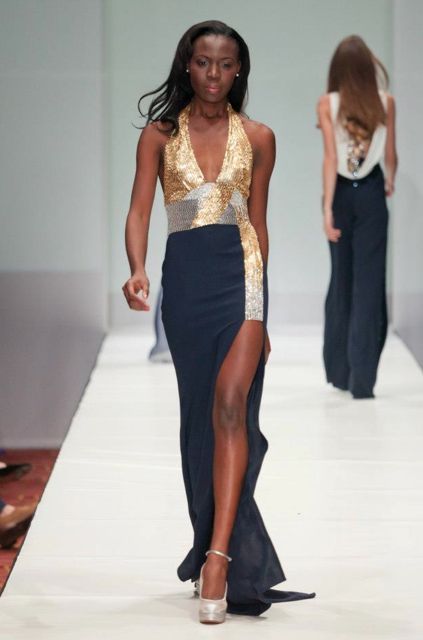 FDM: Many years ago when you were showing in New York at MBFW, I remember probably the first or second collection that you showed reminded me of the TV show ‘Dynasty.’ I felt like you could dress every woman at the party and fill the whole room à la Chakra. It seems now she doesn’t have to go to a party to wear your dress, but I did see some bling pieces on the runway, and that dress with the high-slit! Though Dynasty was not in Houston, I visualize a similar party here. Is that what brought you to the city ?