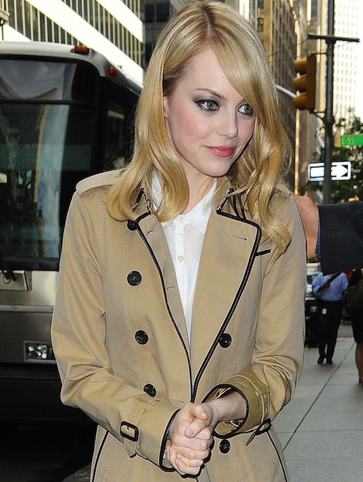It’s officially Spring, though it still feels like the freeze is on in NYC. In celebration of shedding the major coat and walking more in the city, we picked a variety of CHIC light jackets to get you excited. To keep it even more inspiring, we’ve selected a handful of CELEBs and VIPs sporting a BURBERRY variation of the Trench including Jessica Chastain, Gabriella Wilde in that amazing purple number, Jennifer Lawrence, and Emma Stone. The trench is one of the most versatile staples in a girl’s wardrobe, and somehow that go-to light khaki tells us, yes- it’s getting brighter after all.