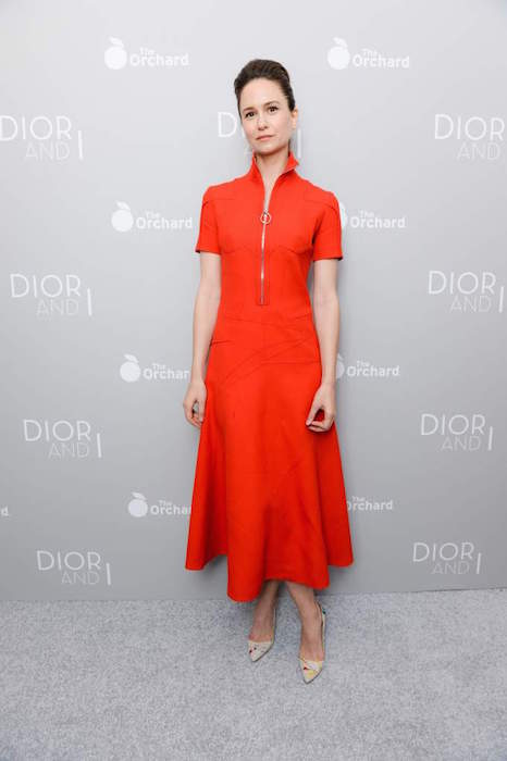 Lake Bell wore a Dior red silk and wool cadi dress.