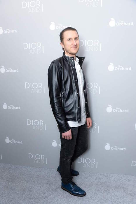 Scott Campbell wore a Dior Homme black leather jacket and white button down shirt.