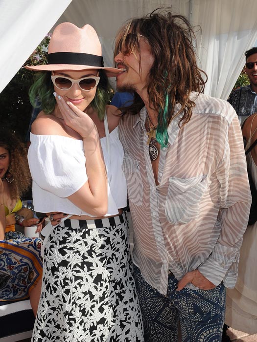 CATCHING UP: a few of Hollywood’s who’s who including Katy Perry, Lea Michelle, Julianne Hough, Elijah Wood and Miles Teller were spotted at COACHELLA 2014. Celebrating music with style, Katy Perry requested champagne before even taking a seat at her VIP cabana while catching u with Steven Tyler at the LACOSTE Beautiful Desert Pool Party.