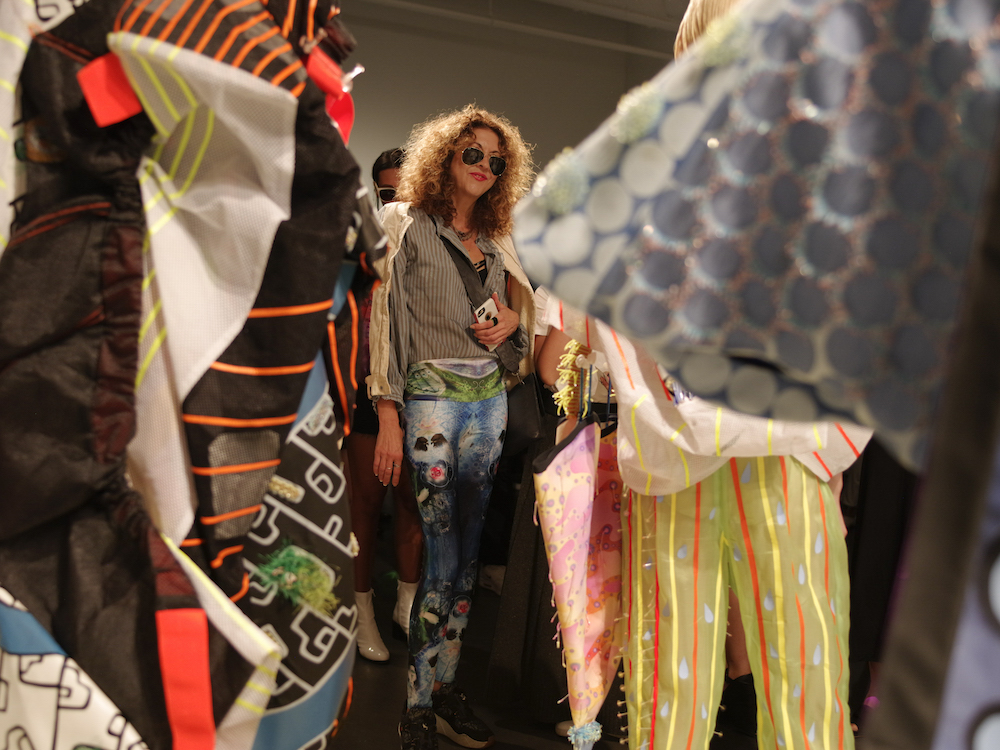 The result was one fantastically multicolored vibe at Pier 59 – where I incidentally was blending right in to the art on the wall :). Plus, this show was one of our most liked posts our from NYFW ss18 on my curated FashionDailyMag tumblr, where it was shared and liked over 2500 times!