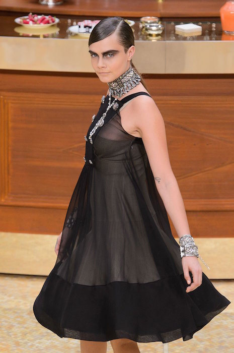Wearing little black dresses that were bursting YOUNG, the girls looked modest, cute, and very age appropriate in the almost “baby doll” silhouettes. Perfect for the younger CHANEL loving set… and Lagerfeld didn’t forget about them or their shiny jewelry obsession either. Here is a glimpse of a few favorite LBDs for (almost) all of us.