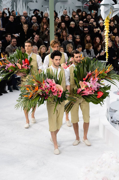 Never a dull collection from Karl Lagerfeld. Blooming in flowers and hats, the CHANEL haute couture spring 2015 has all the details in check. Though the silhouettes weren’t drama, the cute skirts and floral details caught our attention. The hat and makeup combo were stunning, very lady, very chic, and the girls, especially Lindsey Wixson personified the beauty look flawlessly. Other familiars included of course Kendall Jenner, Sasha Luss, and Joan Smalls amongst the many.