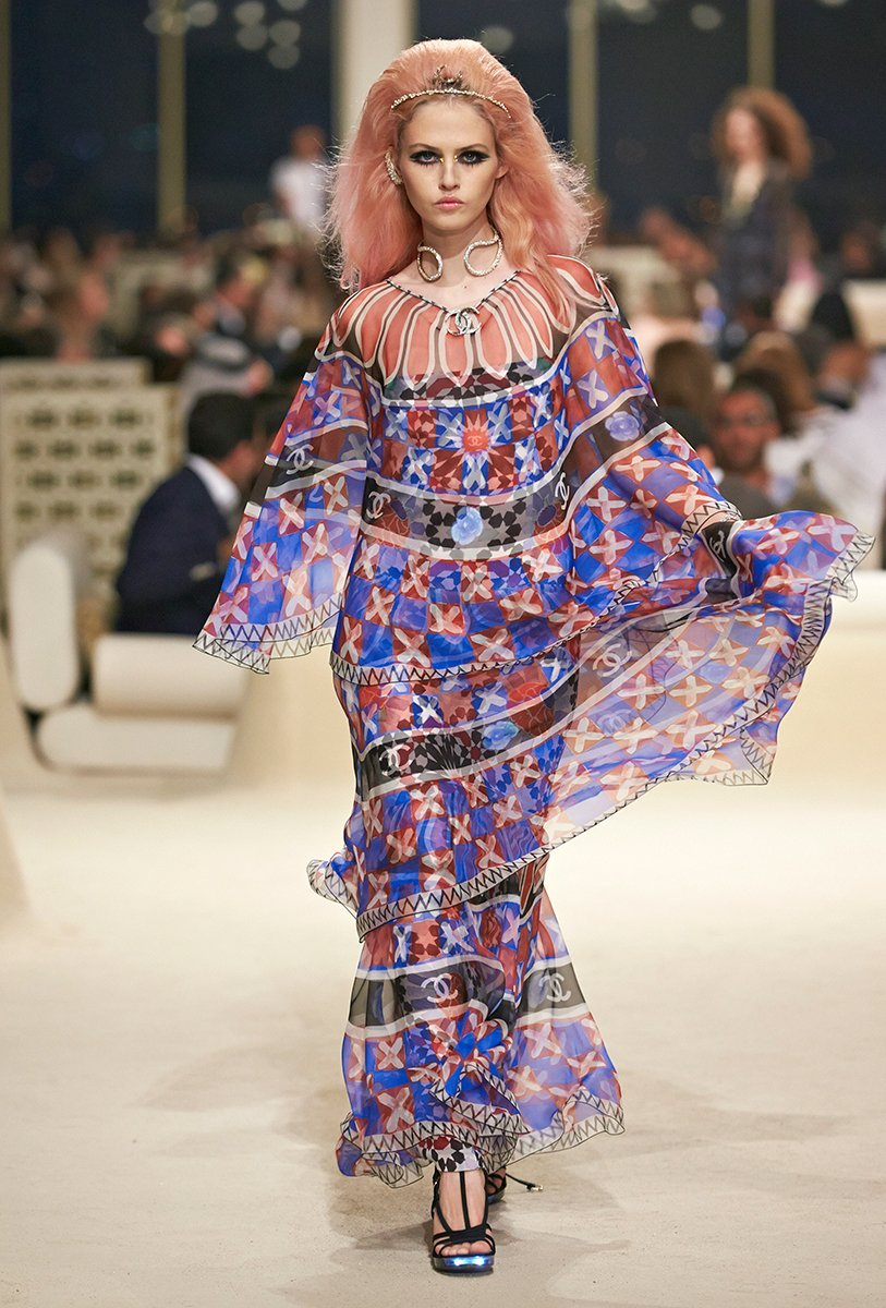 Here we go, a little view of Chanel Resort 2015 Dubai… Starring Joan Smalls, Lindsey Wixson, Binx Walton, big hair, and a lot more. The claim that Lagerfeld has made waves in this fashion show and that with the latest Chanel collection isn’t something entirely new, but the effects remain the same. What’s new, however, is the place in which it is staged, where Chanel takes the Middle East – in luxurious Dubai, no less.