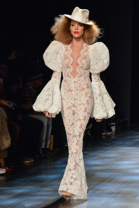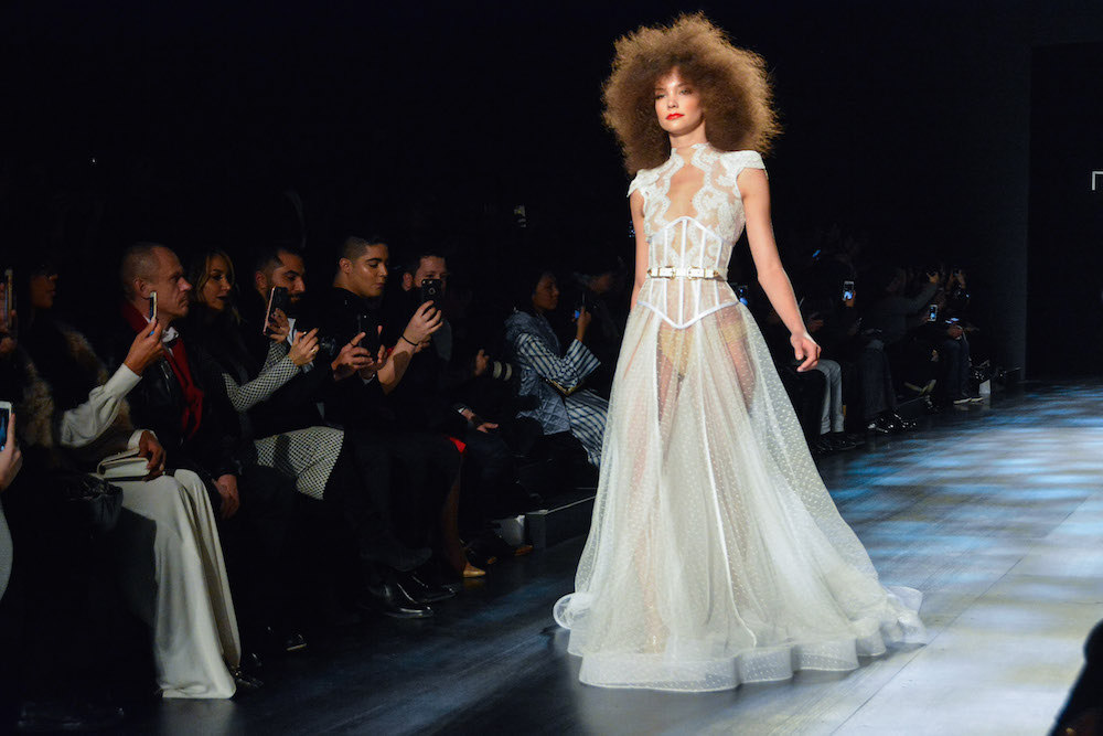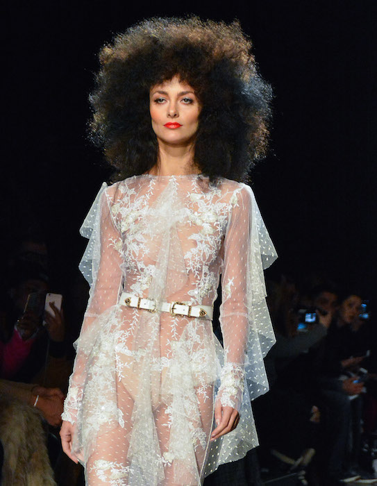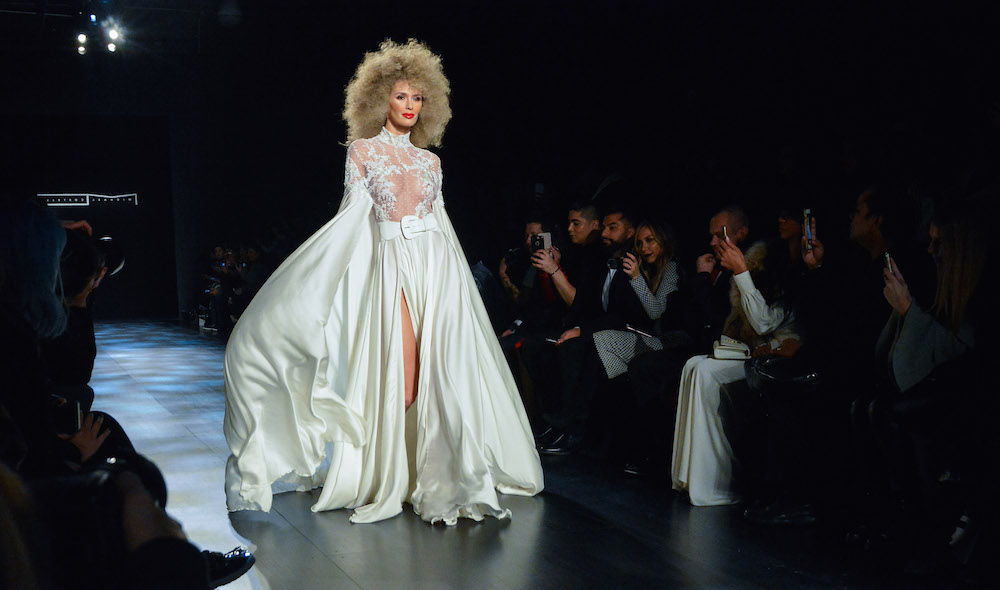 CATCHING UP: After the fashion month fall 2017 cycle, we’re taking another look at memorable moments. And on that fine snow day early at the NYFW shows this season, one of our WOW moments was coming in from the snow and straight to fun times at MICHAEL COSTELLO. Big hair, 70’s disco vibes x 80’s lips and a hip + delicious styled parade of lace and flowing gowns rocked our snowy evening.